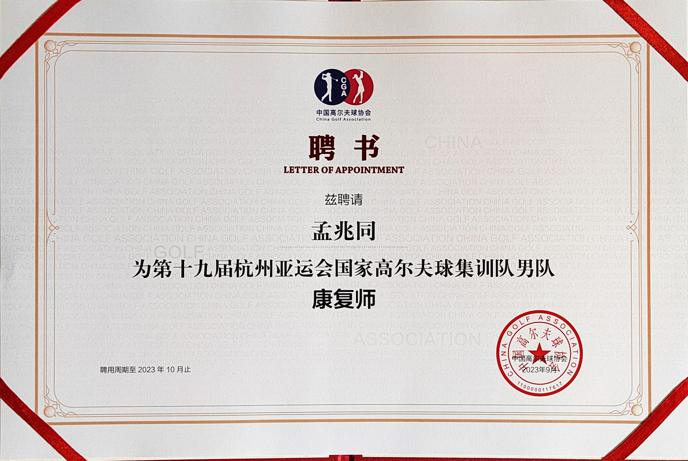 孟兆同-第十九届杭州亚运会高夫球集训队男队康复师